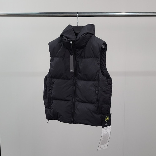 STONE ISLAND 스톤아일랜드 덕다운 사이드와펜 후드패딩 조끼