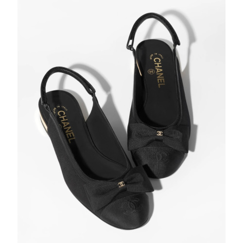 • ●샤넬 리본 로고 블랙 슬링 플랫 슈즈●