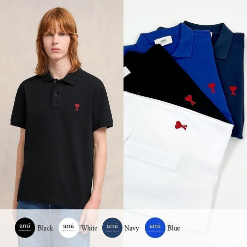 • AMI 아미 드 꾀흐 엠브로이더리 PK 카라 반팔티