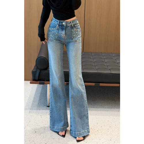 CHANEL 샤넬 하이웨스트 포켓 CC 플레어 데님팬츠